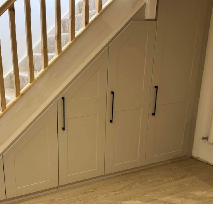 ButtonLight grey under stairs storage