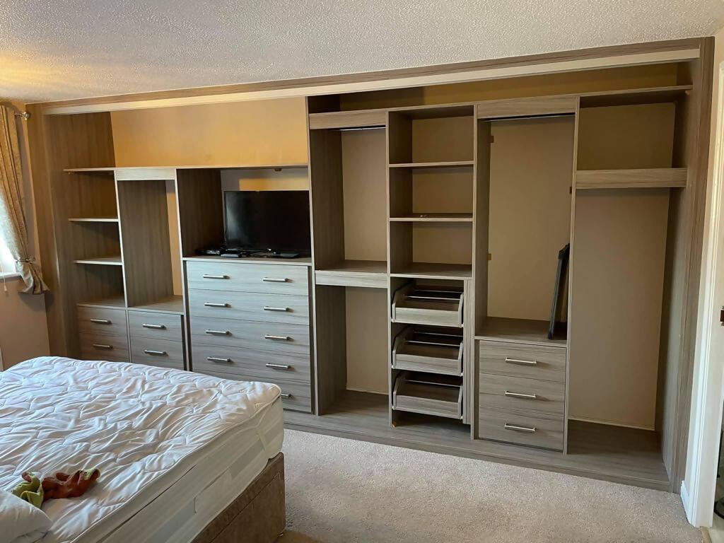 Prefer a modern look to your bedroom? We design, build and install a range of classic and modern style made-to-measure fitted wardrobes. The finishes include wood and vinyl, with mirrors optional, and you can decide the internal fittings for yourself as well. The whole process is simple and honestly priced.
